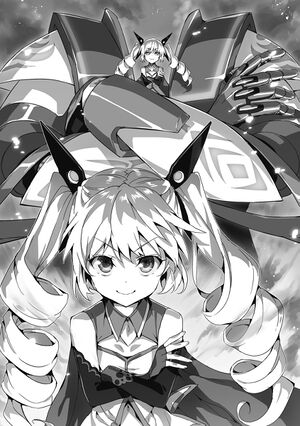 Inside the gigantic magic armor, a petite girl was settled in. Her rolled twintails shook, when she was crossing her arms haughtily, the metallic arms were also crossing themselves matching with that movement.