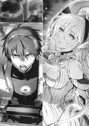 But, Kizuna who equipped Eros endured through that impact. Aine’s fist caved into his breast armor. Eros’s armor broke and her fist sunk in, but Aine’s fist didn’t pierce Kizuna’s heart.