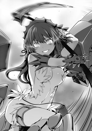 Even so Grace was still following his speed. She aimed her scythe at Kizuna and swung down.