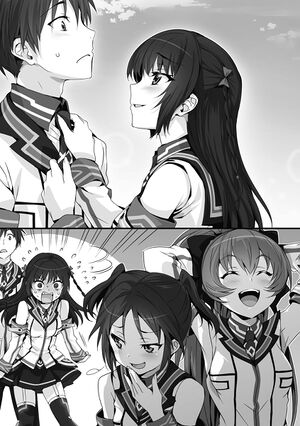 Himekawa whose seat was in front of him was talking with a friend near the entrance. It seemed that Chidorigafuchi whose seat was beside him still hadn’t arrived yet. She had a free personality, so he guessed she wouldn’t come until just barely before the time. When he turned behind, he couldn’t see the golden hair that was always sparkling bright there yet today. Surely she was still talking with friends of another class. Possibly she was even doing morning training. She was unexpectedly a hardworking person in that.